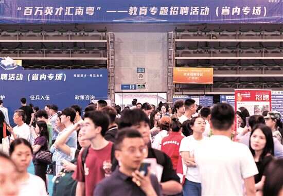 5月25日,“百万英才汇南粤”教育专题招聘活动在华南师范大学大学城校园体育馆举行。活动共吸引了中山大学、暨南大学、华南师范大学、华南农业大学等100多所高校,各地级以上市所属学校,广东实验中学等省属中小学校,以及涉教育行业的企业等300多家优质教育单位携1.2万个岗位参会,覆盖省内各地级以上市的教学、教研、教育服务全领域,现场汇聚省内外求职者1万余人次,线上线下共收到简历数超1.2万份,初步达成就业意向超过1500人。