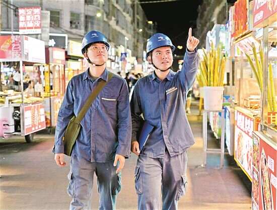 ■南方电网广东揭阳榕城供电局东山供电所工作人员对卢前夜市商户开展用电安全检查。