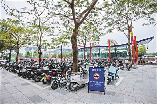 新快报记者在黄村地铁站B出口周边走访中发现,与前两天相比,地铁站口已经看不到涉嫌用“摩电”非法营运的搭客人员,但在这里停放的电动自行车,有部分还是乱停放,也有相当一部分是无牌的。