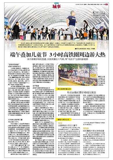 扒龙舟、逐美食,端午民俗皆体验;逛乐园、去嬉水,童趣六一放肆过。今年端午小长假处于“五一”和考试季之间,本地游以及3小时高铁圈的短途游成为广大旅客出行首选。由于儿童节刚好在小长假中间,亲子游需求特别显著,乐园类景区人气爆棚,不少热门主题乐园门票预订量同比增长超过100%,带“毛孩子”出游也成为新趋势。