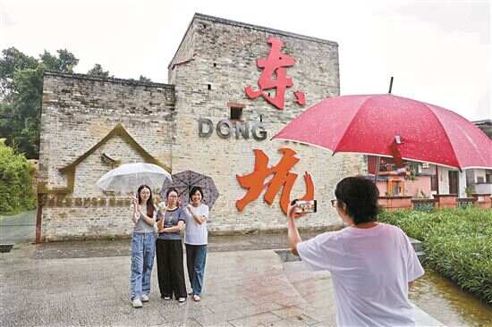 一方面运用好“古”色,一方面营造好“绿”色。东坑镇相关负责人告诉记者,丁屋村的文旅发展并非孤立,而是与附近的彭屋村、黄屋村形成“丁彭黄”片区协同发展。2023年,“丁彭黄”片区入选“百千万工程”首批典型村,是东莞全市第一个连片培育的典型村,这里有着良好的“山、水、村、居”生态基础,已形成占地300公顷的乡村韵味型城市“桃花源”。
