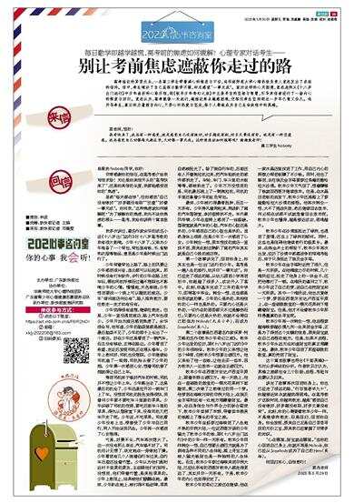 非常感谢你的信任,在高考前夕给我写信求助!无论是你来信开头的“高考快来了”,还是你来信的长度,我都能感受到你的“焦虑”。