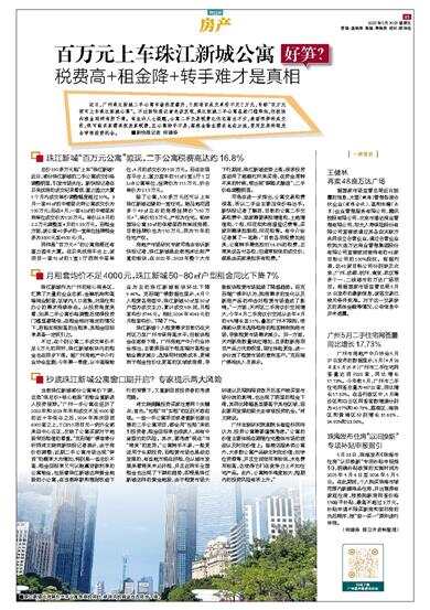 珠江新城“百万元公寓”频现,二手公寓税费高达约16.8%