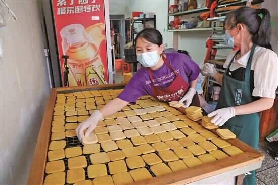 与麦芽糖的偏冷不同,位于松源墟的胜旺“松源豆干”店却生意非常红火,用炭火现烤现卖的豆干卖到一元一块。记者尝试了一口,发现它豆浆味很浓,咸淡适中,很有嚼劲。店里一块牌匾写着,制作人何胜旺已被列入区级非物质文化遗产代表性项目“松源豆干”的代表性传承人。“我们坚持手工制作,早上要很早起来制作,非常辛苦,但是效益也很不错。”店里的负责人何云珍告诉记者,平时销量不错,一到春节等节假日销量会更大些。