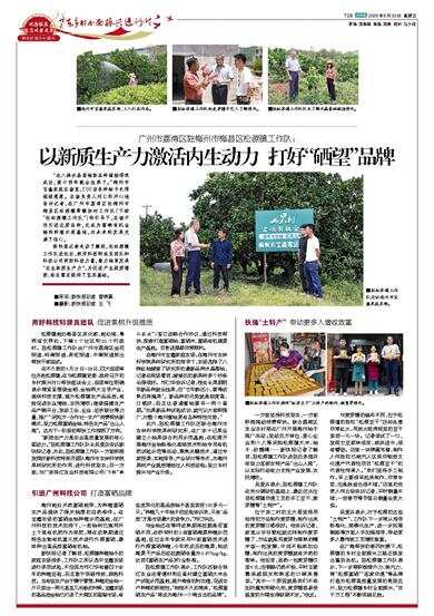 此外,驻松源镇工作队还联合梅州市农林科学院果树研究所,在广东十记果业建立小柚果综合利用示范基地;在松源开展梅州金柚标准化栽培技术和柚专用有机肥试验示范等活动,聚焦关键技术,通过专家授课、实地指导、产业研讨等形式,为梅州果树产业提质增效注入科技动能,助力乡村振兴与产业升级。