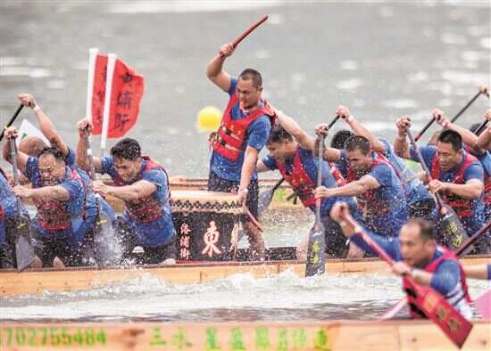 从裁判发号施令起,他就一直目不转睛地跟着本队伍的龙舟移动。所在的队伍比赛结束后,更是与队员在集结点欢呼迎接。“龙舟是一项讲求团队精神的运动,训练过程很累,但我们队伍的成绩比去年有进步,很值得高兴。”米可说,比赛结束后还要去体验“龙船饭”。