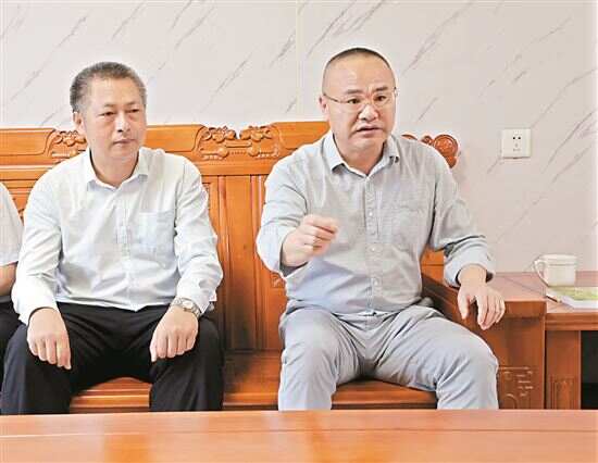 ▲下太镇党委书记许平(右)、驻下太镇工作队队长邓伟东接受新快报记者采访。