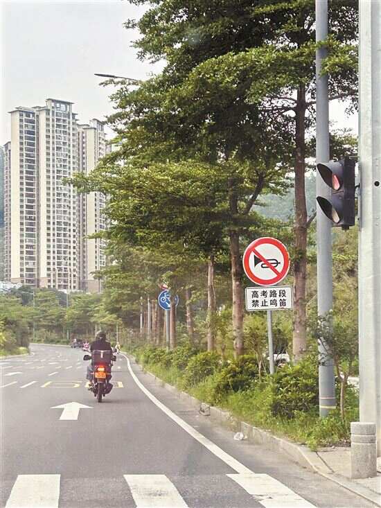 记者也从广州市公安局增城区分局获悉,在6月7日至9日的考试时间段内,宁埔大道增城区应元学校高中部路段(峰林路与宁埔大道交叉路口至宁埔大道与创学路交叉路口路段)将进行道路管制。禁止1.75吨(含1.75吨)以上货车和客运公交车辆通行,其余途经管制路段的车辆禁鸣喇叭。对违反规定的车辆,将由公安交警部门依法查处。记者走访时经过该路段也发现,路边也贴上了“高考路段,禁止鸣笛”的告示。
