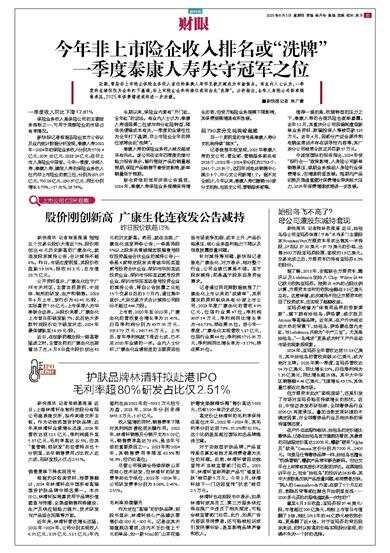 近期,常居非上市险企保险业务收入首位的泰康人寿罕见被反超成为市场焦点。有业内人士认为,一季度的业绩往往为全年打下基调,非上市险企全年的排位或将由此“洗牌”。分析指出,去年人身险公司新单销售承压,2025年保费增速或将进一步放缓。