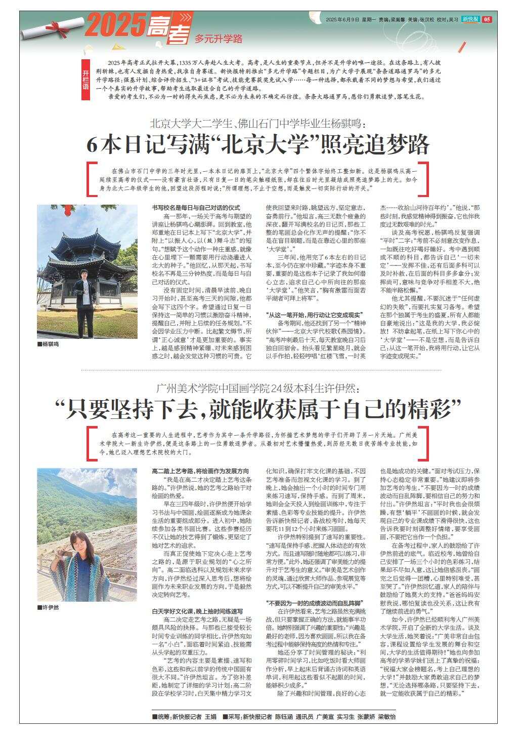 北京大学大二学生、佛山石门中学毕业生杨骐鸣:6本日记写满“北京大学”照亮追梦路