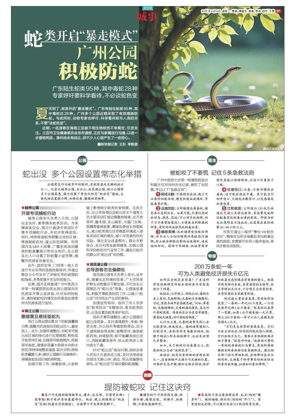 蛇类开启“暴走模式” 广州公园积极防蛇