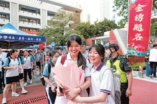 ■6月9日,广东省2025年普通高考结束,在广州市天河中学(珠江新城校区),考生们走出考场,与亲朋好友共同庆祝这一人生重要时刻。