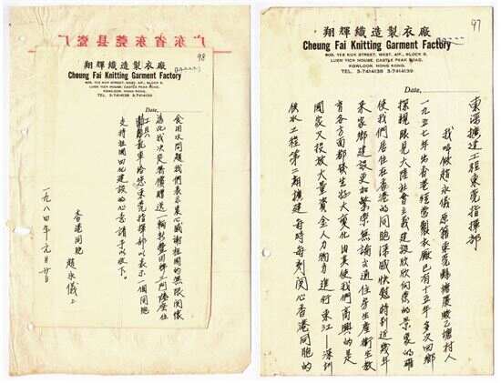 ■1984年,香港市民赵永仪女士给东深扩建工程东莞指挥部的信。