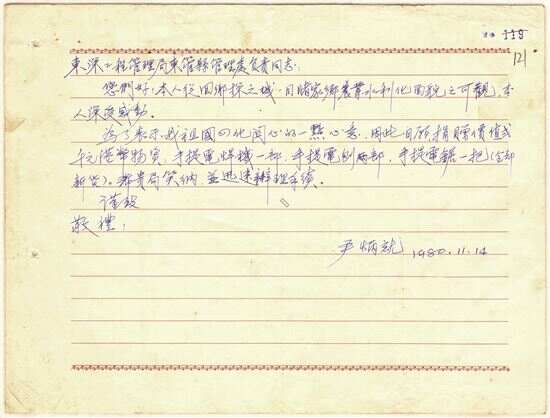 ■1980年,香港市民尹炳就先生给东深工程管理局东莞县管理处的信。