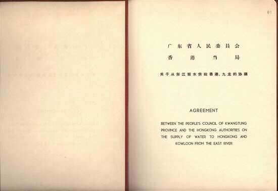 1963年6月,周恩来总理决定引东江水供应香港,工程被命名为东江—深圳供水灌溉工程。同年12月,中央财政拨款3800万元建设东深供水工程。1964年2月20日,东深供水工程全线开工。1964年4月22日,广东省人民委员会代表和香港当局代表在广州签订了《关于从东江取水供给香港、九龙的协议》。