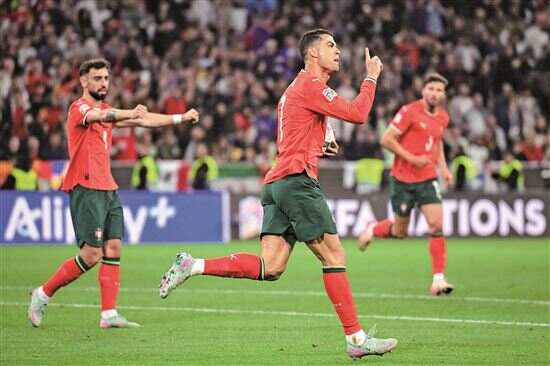 北京时间昨天凌晨,在第四届欧国联的决赛中,卫冕冠军西班牙队和葡萄牙队在120分钟内打成了2∶2,不得不通过点球决胜。最终,葡萄牙队以5-3胜出,第二次赢得了欧国联的冠军。本场比赛,葡萄牙队长C罗首发出战了88分钟,打进1球。