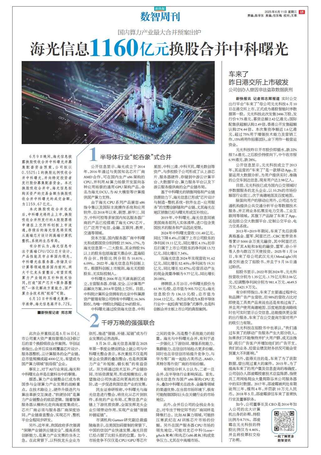 海光信息1160亿元换股合并中科曙光