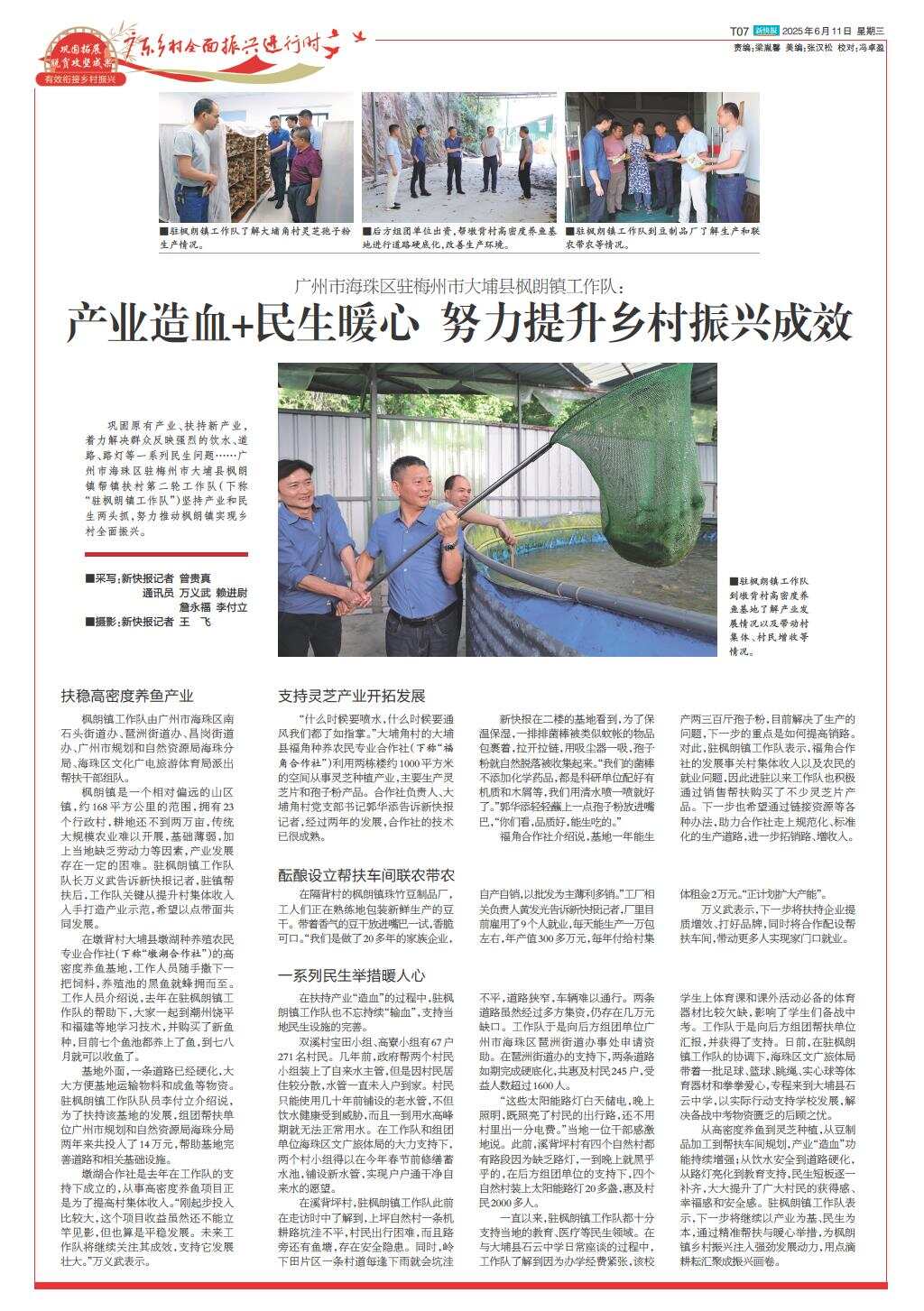 广州市海珠区驻梅州市大埔县枫朗镇工作队:产业造血+民生暖心 努力提升乡村振兴成效