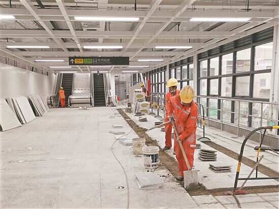 ——极小作业面下的轨道施工。十二号线广州体育馆站轨道施工过程中,因受广州体育馆至景泰站区间大盾构拆除影响,该站仅广景区间右线1处井口可用于轨排吊装,施工场地严重受限。广州地铁建设公司第五建管部罗洋牵头组织专项协调,优化施工计划、整合资源,有效破解施工难题。项目团队创新采用疏散平台无轨化施工,统筹轨道与供电专业协同作业,同步压缩材料生产周期,确保轨通后立即安装,为后续实现“轨通”“电通”目标奠定基础。