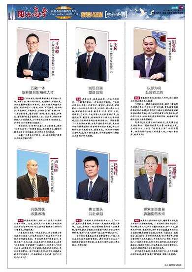 寄语 健康是人类永恒的追求,健康事业的发展正面临人才紧缺的问题。广东药科大学作为全国三所药科大学之一,六十七载风雨兼程、初心不改,秉承药学中西、医道济世,学科专业设置覆盖医药产业全链条和服务健康全过程,已形成“以药为主,药医结合,药工融合,多学科协调发展”的办学特色,特别注重学科专业交叉融合,开办现代产业学院,开设卓越人才培养创新班、本科双学位国际班,积极探索产教融合、医教协同的人才培养路径,尤其注重学生人文精神、创新思维和动手能力的培养。