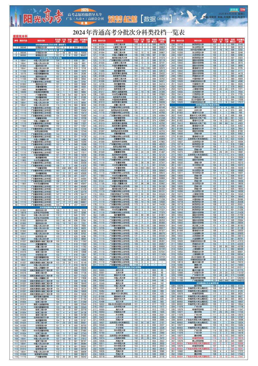2024年普通高考分批次分科类投档一览表(1)