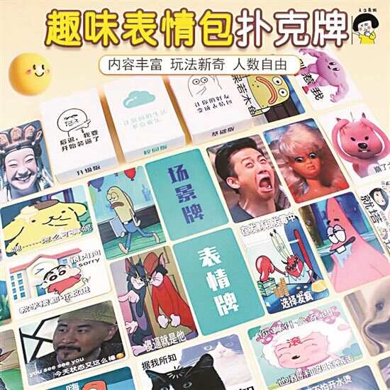 记者看到,此类表情包扑克牌价格普遍较低,10元左右就可以买下一包165张并含有说明书的系列扑克牌。