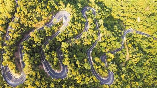 远处,青山叠翠,深深浅浅的绿掩映;近处,长短宽窄各不一的叶片在微风中“叮当”碰撞。一条浅灰色步道时隐时现。徒步爱好者可沿之深入群山,亲近森林,在绿色斑斓中感受自然之美。