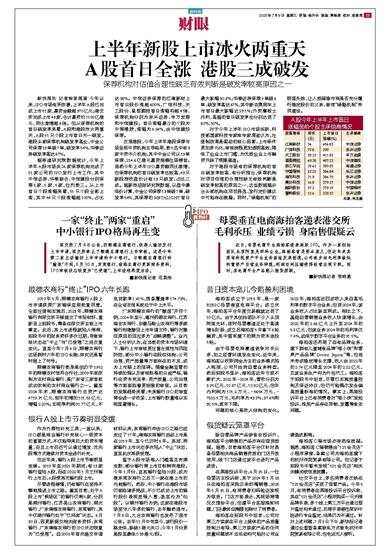 新快报讯 记者涂波报道 今年以来,IPO市场有所改善,上半年A股已完成上市51家,募资金额超370亿元;港交所完成上市43家,合计募资约1100亿港元,同比激增超6倍。但从保荐机构的首日破发率来看,A股和港股冰火两重天,A股51只个股上市首日无一破发,港股头部保荐机构破发率高企,中金公司保荐13单破7单,破发率54%,华泰证券破发率高达67%。