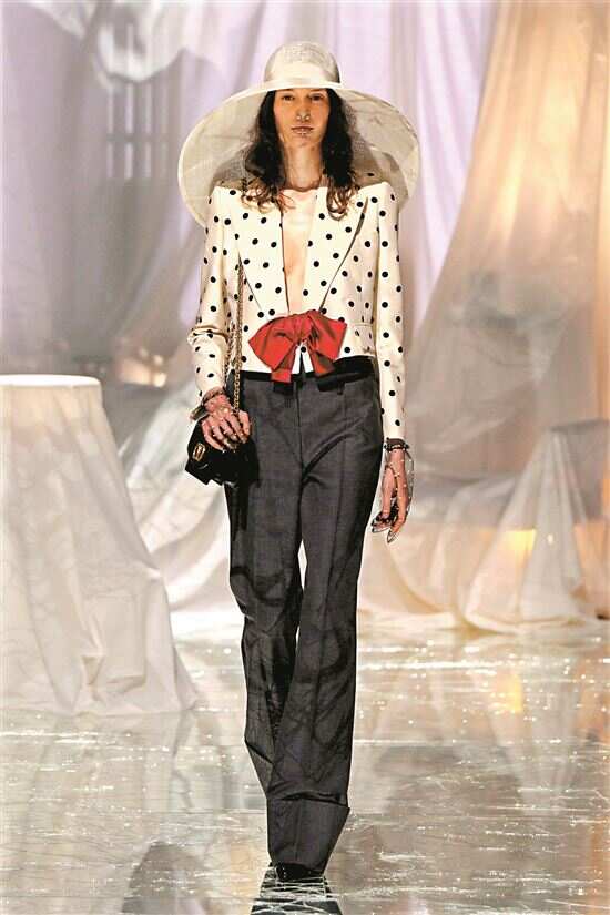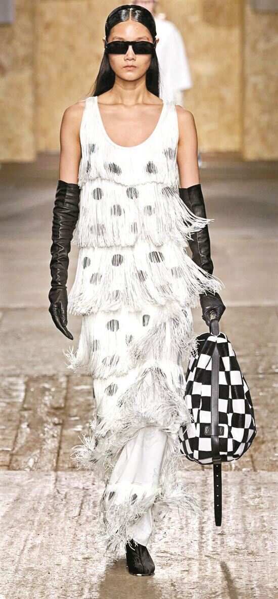 此外波点的优势还在于其多功能性,无论经典黑白波点裙还是用于衬衫、裤子、T恤及头巾、手套等配饰上或更为夸张的款式,都散发出灵动俏皮。波西米亚风的回归也让波点与流苏这两种经典元素有了跨时代的结合,波点如被风吹散的墨滴,在充满动感的流苏间若隐若现……