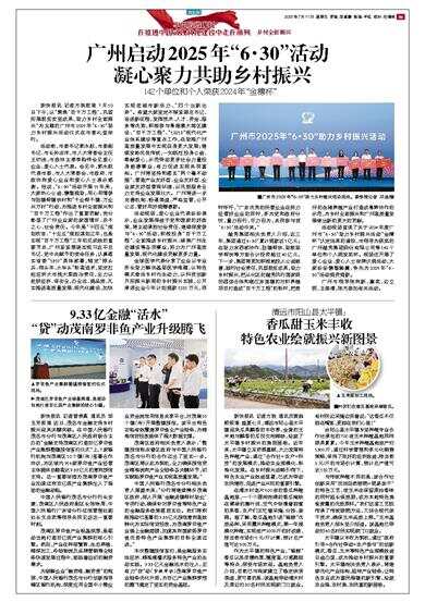 新快报讯 记者方轶报道 7月10日下午,以“聚焦‘百千万工程’,巩固拓展脱贫攻坚成果,助力乡村全面振兴”为主题的广州市2025年“6·30”助力乡村振兴活动仪式在市委礼堂举行。