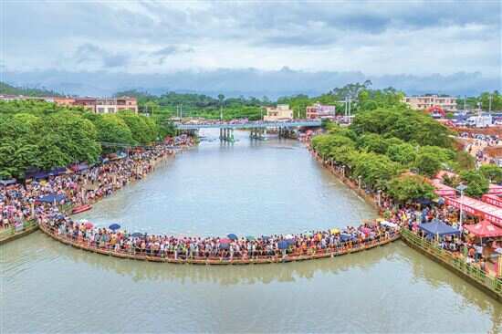 每年农历五月初四,一年一度的高流河墟吸引了四面八方的游客,车水马龙,人山人海,蔚为壮观。“1000多年前,冼夫人打了胜仗归来,在高流河边举行了盛大的庆祝活动,后来形成了一方风俗,每年端午节前,人们自发赶来,集市成墟。”高河村党总支书记陈钊说,相传,古墟当日,竹器、木器放到高流河水中浸一浸不会被虫蛀,小孩在河里洗澡会体魄强健、不生痱子,这些习俗一直延续至今。