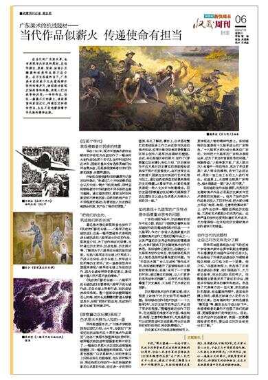 在当代的广东美术界,也有表现有关抗战的题材,且佳作频出,版画、国画、油画以及雕塑的经典作品都不在少数。在百业昌盛的当下,广东美术家依然不忘先辈抵御外敌的艰难岁月,继续通过画笔反映战争的残酷,表现人们对战争的厌恶,一件件作品,恰似一簇簇不灭的薪火,承载厚重的家国记忆,传递坚定的使命担当,生生不息地赓续着中华民族的精神血脉。