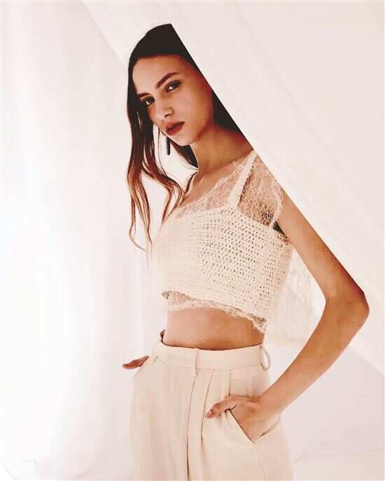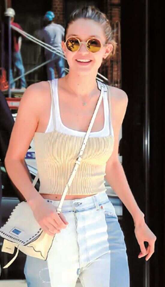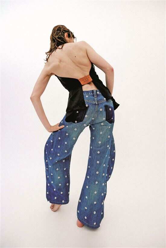 但此版型更适合高挑偏瘦身材,搭七分裤、喇叭裤都很时髦,娇小身型可选择修身或短款背心配高腰下装,借以突出身材比例。