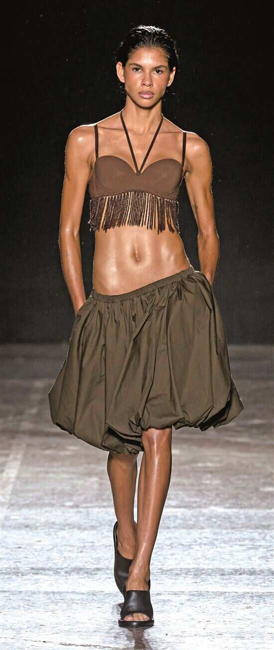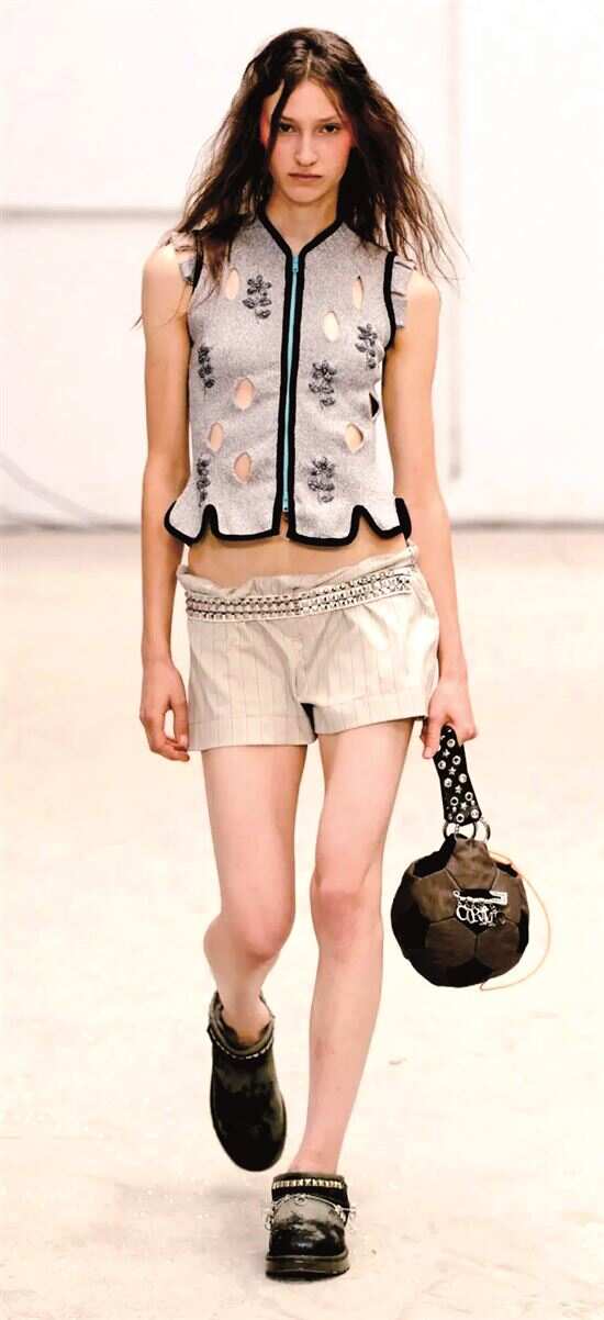 ▲标志性细肩带背心重新成为潮流焦点,也给背心叠穿的造型穿搭提供更多空间。