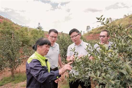 ■驻大柘镇工作队到乔庄村脆蜜金桔基地了解今年结果情况。