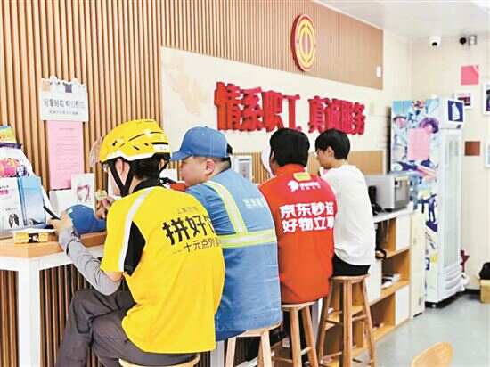 记者走访了几家工会驿站,驿站门口都有标明户外劳动者工会爱心驿站,进入室内凉意袭来,空调冷气充足,座位充裕,最基本的休息、饮水、手机充电等需求都可以满足,还提供无限WiFi。工作人员告诉记者,驿站主要是给户外劳动者提供一个能“缓一缓”的地方,“工作也要劳逸结合,这里能保证他们有地方休息,有杯水可喝。”