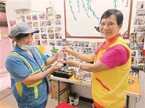 ■人民街“双百工程”社工站开展驿站夏日送清凉活动,为户外工作者送上矿泉水。