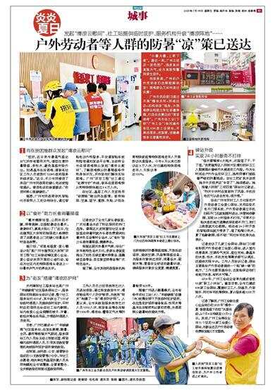 广州市民政部门通过开展“精准关怀+网格巡访+机构纳凉”服务,为困难群众构筑立体化防暑屏障,打造炎炎夏日的“清凉港湾”。广州市总工会(下称“广州工会”)依托遍布各区694家工会驿站,开展送清凉、送温暖、送健康等多元普惠性活动。