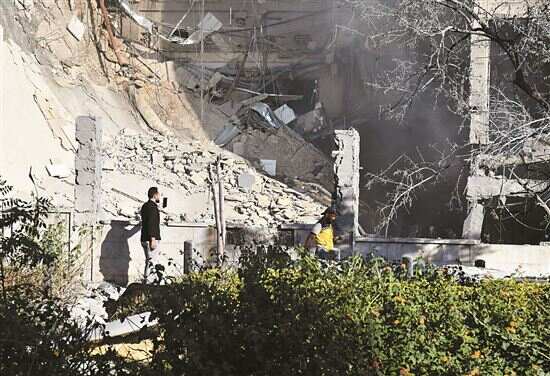 ■叙利亚首都大马士革在以色列空袭中受损的叙“总参谋部”大楼。新华社发