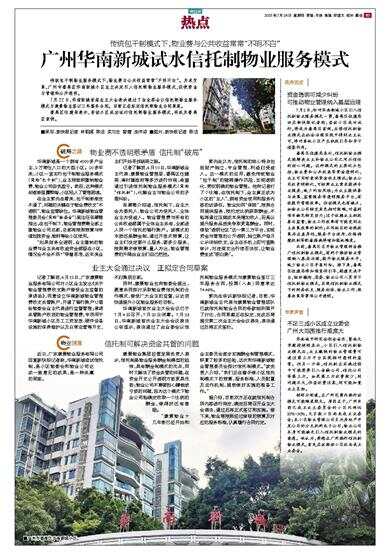 近日,广东康景物业服务有限公司回复新快报记者称,华南新城尝试信托制,是小区物委会和物业公司达成一致意见的成果,是一种共赢的局面。