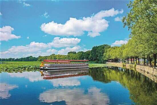 在仙子湖赏荷游玩,可行走,可乘船,无论何种方式,陶醉其间,让时间慢下来都是要旨。连接湖岸和湖心小岛的一道木质曲桥名为“六曲桥”,站在这座260米长度的曲桥上,近可细品活色生香、婀娜多姿的荷花之魅,远可眺望这千亩荷塘带给人的心旷神怡。