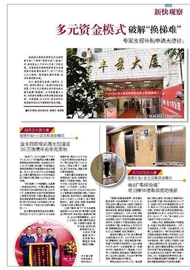 近日,新快报记者深入越秀区、天河区、番禺区等社区一线进行实地走访发现,不同小区正探索出多元资金组合模式破解“换梯难”,为仍然数量巨大的、有更新电梯需求的街坊提供经验参考。专家强调,业主共识、资金到位及规范操作是成功申请国债补贴的关键。