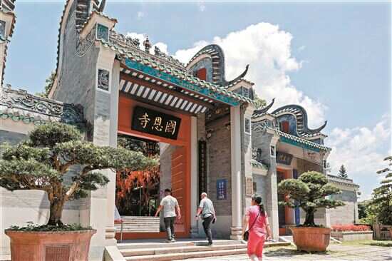 炎炎夏日,国恩寺内环境清幽、凉爽怡人,不少游客来到这里感受远离尘嚣的宁静。六祖镇负责文旅工作的副镇长刘维向新快报记者介绍,国恩寺是国家4A级旅游景区六祖故里旅游度假区的核心景点,每年7月新兴香荔成熟时节,过来采摘品尝香荔的游客都会为六祖镇带来一波旅游高峰。