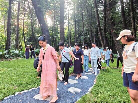同日揭幕的“森林自然学校”,依托一条3.5公里的森林康养径展开教学。该康养径基于德国“森林环境+水雾环境+适宜运动”的森林疗养体系研究成果,以“森活动享·心近自然”为主题,串联起玫瑰园、雨林植物专类园、药食同源植物专类园等特色园区,构建起“五感疗愈”系统。市民可在此赤足体验不同材质的步道,通过自导式康养标识了解子午流注养生法,观赏户外艺术展览,品闻花草芬香,聆听瀑布下的果壳风铃声,还能品尝云萝植物园推出的食疗养生套餐,全方位感受自然疗愈的魅力。