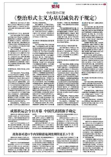 据新华社电 中共中央办公厅、国务院办公厅印发了《整治形式主义为基层减负若干规定》(以下简称《若干规定》),并发出通知,要求各地区各部门认真遵照执行。