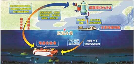 它像一个在深海的“空间站”,停在深海底开展原位实验,可容纳6人,持续30天进行实时观测。人员出入都要依靠载人深潜器,就像宇航员要搭载火箭到达空间站。装置还将在陆地实验室建立深海环境模拟系统,可把海底实验“搬到”陆地开展复刻实验研究。