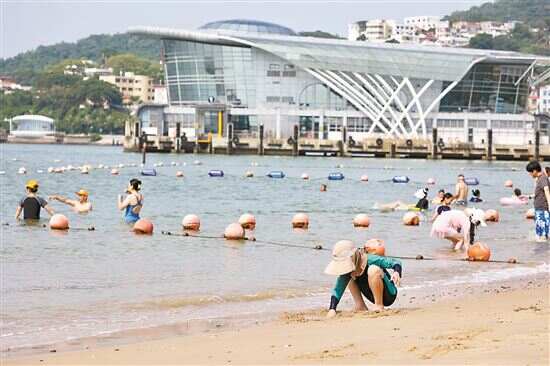滨海大道旁,新改造的一湾沙滩和海滩浴场上,大小朋友尽情玩沙、戏水、荡秋千。“夏天天气热,这个天然游泳池最适合小朋友们玩了。”从广州来到桂山游玩的万先生说。