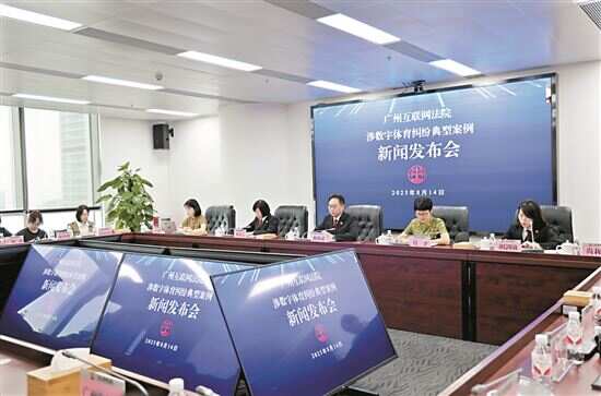 8月14日,广州市委政法委“激情全运 法治同行”广州法治建设主题宣传月活动走进广州互联网法院。在新闻发布会上,广州互联网法院发布了涉数字体育纠纷十大典型案例。