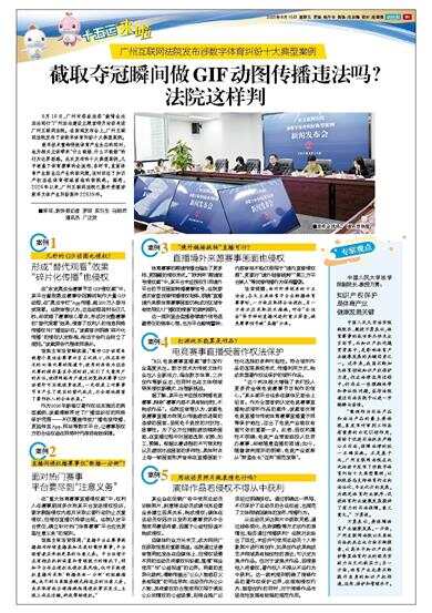 在“东京奥运会赛事节目GIF侵权案”中,某平台截取奥运赛事夺冠瞬间制作大量GIF动图,在“奥运专栏”App传播,超200万人参与或观看。法院审理认为,这些动图虽时长仅几秒,却浓缩了赛事核心看点,形成对完整赛事的“替代观看”效果,侵害了权利人的信息网络传播权与广播组织权。“该案首次明确‘碎片化传播’的侵权认定标准,相当于给行业树立了规矩。”该案原告代理律师表示。