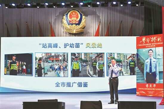 新快报讯 记者林钢威 通讯员粤公宣报道 近日,广东省公安厅举办粤警“枫”彩·第四批“枫桥式公安派出所”公开比武竞赛活动,广州北京派出所、深圳沙头角派出所、珠海拱北口岸派出所、汕头大华派出所、佛山陈村派出所、梅州松口派出所、东莞兴龙派出所、江门共和派出所、茂名龙山派出所、肇庆城区派出所10位派出所所长依次上台,展示汇报创建“枫桥式公安派出所”取得的成绩。